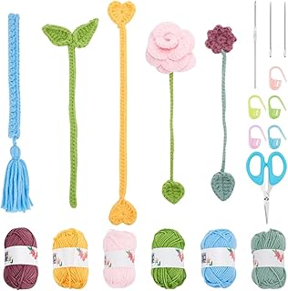 FREEBLOSS 10 Set Crochet Kit - Floral Crochet Bookmark Kit for Beginners with Video Tutorial