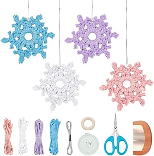 FREEBLOSS 4 Set Macrame Christmas Snowflake Colorful Macrame Snowflake with Instruction Macrame Kits for Adults Woven Macrame Decor for Christmas Tree Craft Enthusiasts Gift