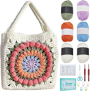 FREEBLOSS Granny Crochet Flower Bag Kit Crochet Kit for Beginners Handmade Granny Square Bags and Totes Floral Tote Bag Knit Bag Flower Purse Craft Starter Kit for Adults
