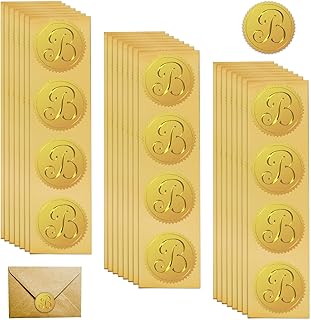 FREEBLOSS 100pcs 2'' Letter Envelope Seal Stickers - Stylized 'B' Design Embossed Foil Certificate Seals - Gold Wedding Scrapbook Stickers - 5x5cm