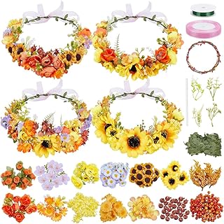 FREEBLOSS 90+ Floral Crown DIY Kit Flower Crowns Making Kit DIY Floral Crown Garland Kit Hair Accessories Handmade Make Your Own Flower Wreath Crown Spring and Autumn Floral Crown