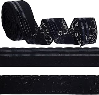 FREEBLOSS 10 Yards Non Slip Stretch Lace with Gripping Silicone Black Sewing Stretch Lace Silicone Backing Non Slip Silicone Gripper Tape for Clothing Stretch Lace Trim